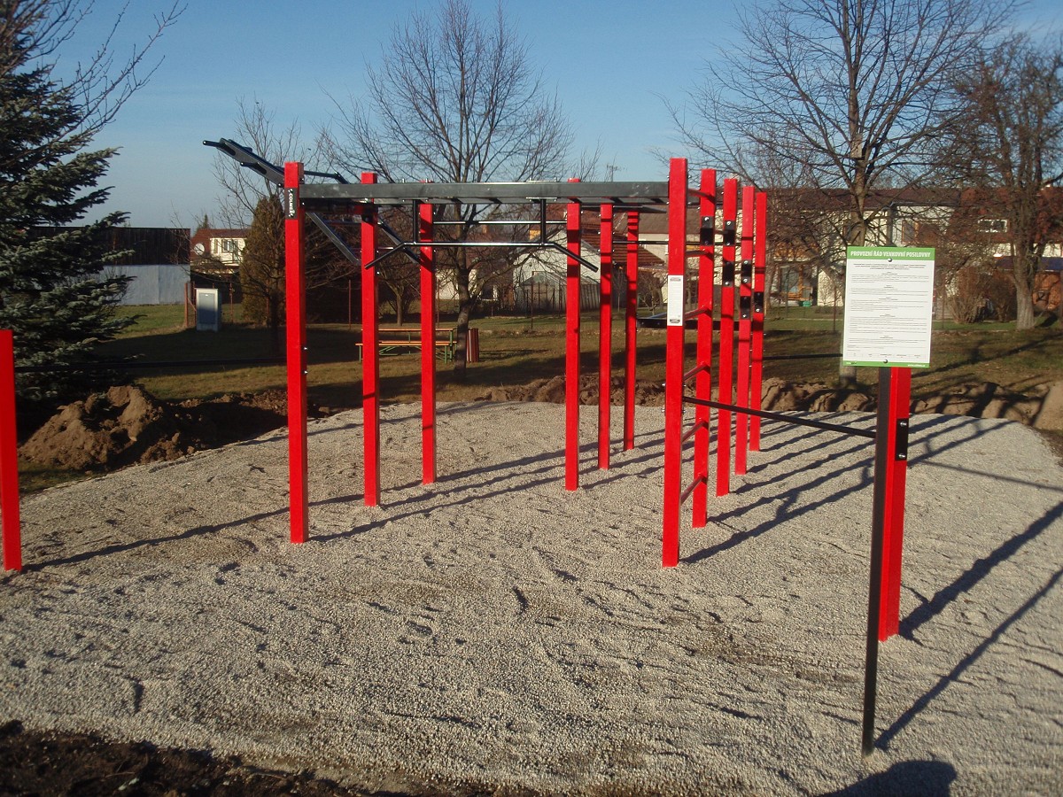 Pořizovací cena cvičebních prvků: 152.902 Kč Úprava hřiště byla provedena svépomocí technickými službami obce.