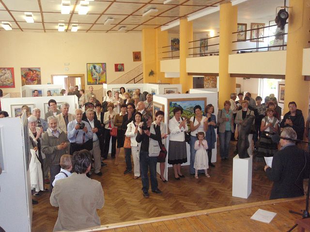 Sál při vernisáži | Hudba a obrazy na pódiu |