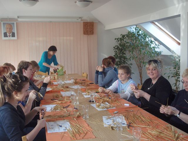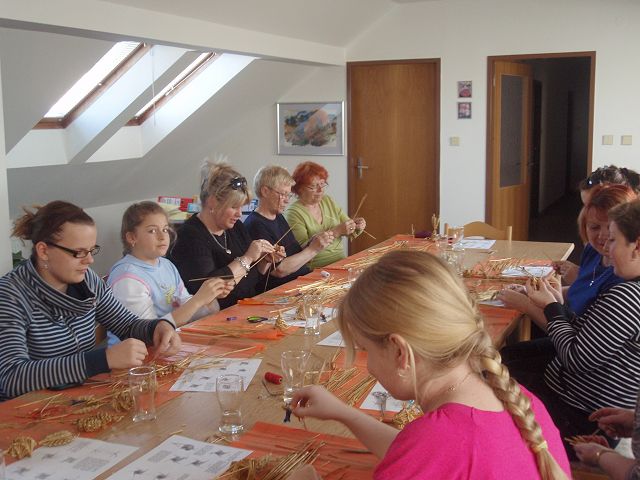 Výroba ozdob a dalších výrobků ze slámy patří k lidovým tradicím a dříve byla oblíbenou rukodělnou technikou. O svoje zkušenosti se podělila lektorka paní Beranová z Českých Budějovic a každá účastnice kurzu vytvořila několik slaměných ozdob.