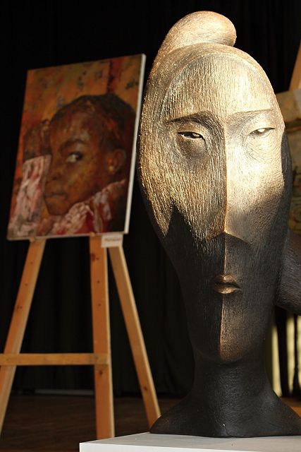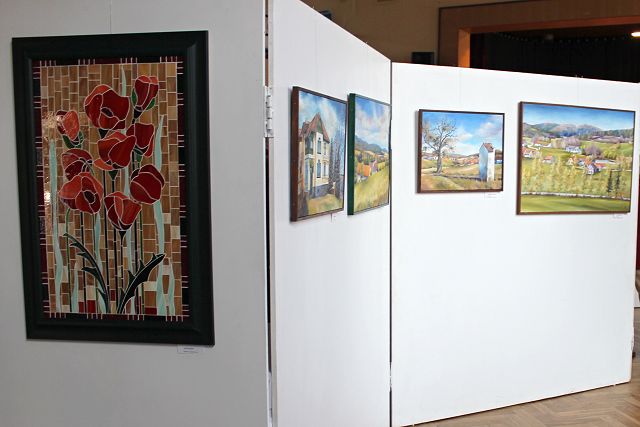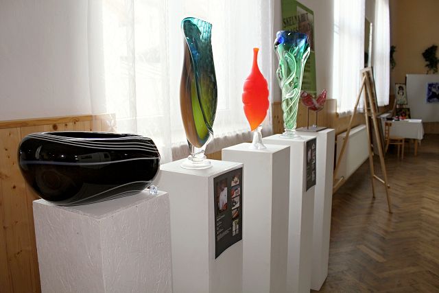 Společná výstava obrazů, soch, uměleckého skla, mozaiky ze skla a fotografií